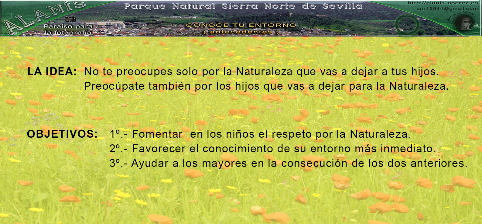 A través de las fichas de abajo, con elementos de la flora y la fauna del entorno de Alanís, presentándolas en colegios y asociaciones de todo tipo, se pretende conseguir los siguientes objetivos:
